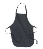 This product is made from 12 Oz. 100% cotton. Other features include a soil release finish for added stain protection, two waist-level patch pockets and one pen pocket, a 1" wide neck, and waist ties. 22" W x 30" L
