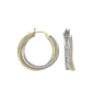 10K Gold and silver cubic zirconia round hoop earrings. Approximate weight 2.9gm. Made in Italy. Gift box included. Complies with Prop 65.