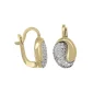 10K Gold cubic zirconia oval shaped fashion hoop earrings. Approximate weight 3.1gm. Made in Italy. Gift box included. Complies with Prop 65.