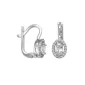10K Silver cubic zirconia oval shaped hoop earrings. Approximate weight 2.4gm. Made in Italy. Gift box included. Complies with Prop 65.