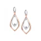 14K White and rose Gold double teardrop earrings with diamond (0.02 CT. T.W.). H-J colour. I1-I3 clarity. Certificate of Diamond Authenticity is available. Complies with Prop 65.