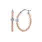 Charles Garnier sterling silver "TORINO OVAL 35" rhodium / rose gold plated 3mm woven with cubic zirconia 35mm oval hoop earrings. Gift box included. Complies with Prop 65.