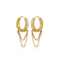 Stainless steel 14.5mm cubic zirconia and double chain huggie hoops with gold plating. Gift box included. Complies with Prop 65.