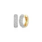 Diamondlite cubic zirconia 15mm wide pave huggie hoop in sterling silver with 18K gold plating. Gift box included. Complies with Prop 65.