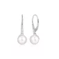 Diamondlite Cubic Zirconia 8.5mm Round Genuine Pearl Drop Leverback Earrings in sterling silver.
