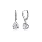 Cubic Zirconia 8mm round micro pave leverback earrings in sterling silver. Gift box included. Complies with Prop 65.