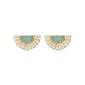 Diamondlite Cubic Zirconia and Genuine Amazonite Fan Stud Earrings - Gold