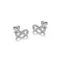 Cubic Zirconia infinity stud earrings in sterling silver. Gift box included. Complies with Prop 65.