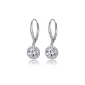 Cubic Zirconia round halo leverback earrings in sterling silver. Gift box included. Complies with Prop 65.