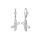 ELLE "Baguette" Rhodium Plated Straight Baguette (4x2mm) Criss-Cross Lever Back Drop Earrings. Gift box included. Complies with Prop 65.