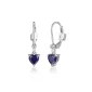 New ELLE "Blue Star" rhodium plated sterling silver 5mm heart created sapphire and lab grown diamond 2x1PT round (F/C H-I/I1) drop earrings. Gift box included. Complies with Prop 65.