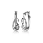 ELLE "Eternity" rhodium plated sterling silver love knot 22 x 15mm hoop earrings. Gift box included. Complies with Prop 65.