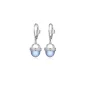 ELLE "Pivot" Rhodium Plated Round Synthetic Dark Blue Quartz (8x6mm) & Round Cubic Zirconia Lever Back Drop Earrings. Gift box included. Complies with Prop 65.