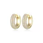 ELLE "Stardust" gold plated sterling silver 15mm hoop earrings with 5-row clear cubic zirconia and snape in closure. Gift box included. Complies with Prop 65.