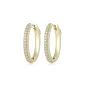 ELLE "Stardust" gold plated sterling silver 20x15mm oval hoop earrings with 3-row clear cubic zirconia and snape in closure. Gift box included. Complies with Prop 65.