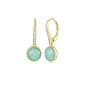 Fleur de Vie collection cubic zirconia, crystal and genuine peru amazonite 8mm round doublet earrings in sterling silver with 18K gold plating. Gift box included. Complies with Prop 65.
