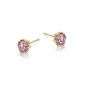 Fleur de vie 6mm round genuine brazil amethyst earrings in sterling silver with 18K gold plating. Gift box included. Complies with Prop 65.