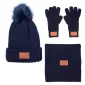 Clear frosted EVA zip locking storage pouch packing with our matching acrylic rib knit accessories with PU patch. Set includes Leeman™ Knit Beanie with Fur Pom Pom, Leeman™ Acrylic Rib Knit Scarf and Leeman™ Rib Knit Gloves. Each piece features PU Faux Leather patch measuring approximately 1.96"w x 1.18"h for decoration (on front cuff for beanie, on end for scarf, on wrists for gloves). Beanie features faux fur pom pom at top. Components are one size fits most adults. Complies with Prop 65.