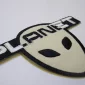 Embroidered GloDark Emblems are manufactured with 100% polyester twill fabrics and 100% polyester embroidery threads, where at least one of the design colours is stitched with a formulated fluorescent or photo-luminescent thread. Design elements can be embroidery with a combination of standard and GloDark threads, or with GloDark threads only. Embroidered GloDark Emblems can be created with up to 15 thread colours per design, and they can be formatted into many different shapes and sizes.