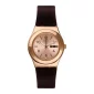 Brownee looks delicious with its solid brown silicone strap and sweet rose gold-colored PVD case and buckle.