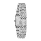 Introducing a new tank style. Silver-tone stainless steel case with edge-to-edge black faceted metalizing mineral crystal. Black dial with three diamonds set on dial. Water resistance to 30 metres. Complies with Prop 65. 23mm Diameter