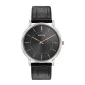 From the Classic Collection. New ultra-slim case in stainless steel and grey dial, flat mineral glass, alligator grain black leather strap with three-piece buckle closure, and water resistance to 30 metres. Complies with Prop 65. 40mm Diameter