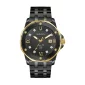 From the Marine Star Collection, this bold timepiece makes a striking style statement. The sport luxury design in black ion-plated stainless steel features a black sunray dial with eight individually hand set diamonds and gold-tone accents, a case with a gold-tone outer top ring, luminous hands, and a calendar. This distinctive men's timepiece also has a deployant clasp closure and is water resistant to 100 metres. If you're looking for a watch to stand out from the crowd, look no further. Complies with Prop 65. 44mm Diameter