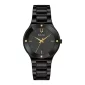 This Millenia Ceramic watch features a black ceramic and stainless steel case with edge-to-edge domed metalized crystal. The black Mother-of-Pearl dial is has gold-tone accents and is embelished with four diamonds flush set on the crystal. Water resistant to 30 metres. Complies with Prop 65. 34mm Diameter