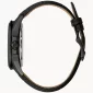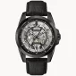In stainless-steel with a skeleton dial and exhibition case back, leather strap with buckle closure, and water resistance to 100 meters. Comes with a 3 year warranty. 43mm Diameter x 22mm W