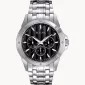 Multifunction design in stainless steel with patterned dial, day, date and 24-hour sub-dials, second hand, screw-back case, and locking fold-over clasp with safety clasp and extender. Water resistance of 30 meters and comes with a 3 year warranty. 43mm Diameter x 23mm W