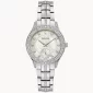 Stainless steel case, bracelet and lustrous Mother-of-Pearl dial embellished with 174 brilliant crystals. Features a three-hand sub sweep quartz movement, flat mineral crystal, and water resistance to 30 meters. Comes with a 3 year warranty. 30.5mm Diameter x 14mm W