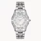From the Crystal Collection. In stainless steel with 200 crystals individually hand-set on case and Mother-of-Pearl sunray dial, second hand, cabochon crown, and a matching stainless steel bracelet with a deployant closure. Water resistance of 30 meters and comes with a 3 year warranty. 30mm Diameter x 16mm W
