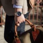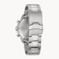 Six hand calendar chronograph in stainless steel with flat mineral glass, screw-back case, fold-over closure with pushers, safety bar and extender, and water resistance to 100 meters. Comes with a 3 year warranty. 43mm Diameter x 22mm W