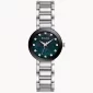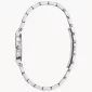 In stainless steel, 12 individually hand set diamonds on Mother-of-Pearl dial, domed mineral glass, metalized edge-to-edge crystal, stainless steel bracelet with deployant closure, and water resistance to 30 meters. Comes with a 3 year warranty. 26mm Diameter x 9mm W
