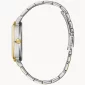 Retro style with modern edge. The two-tone stainless steel case with matching stainless steel bracelet. Features domed mineral crystal and short fold-over clasp closure. Water resistance of 50 meters and comes with a 3 year warranty. 39mm Diameter x 18mm W