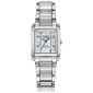A curved rectangular shape defines the watch's silhouette, with a subtle crown and stainless-steel bracelet rounding out the look. On its mother-of-pearl dial, alternating applied and printed markers work, with its printed inner square once again pointing to chic inspirations. Sustainably powered by any light using our Eco-Drive technology. Water resistance of 50 meters and comes with a 5 year warranty. 22mm L x 22mm H x 15.5mm W
