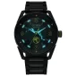 The dial with date features luminous hammer head markers on the hours, glowing hands, an encircled hammer, and a dynamic jagged lightning bolt crossing the watch face. The case back highlights the thundering authority of the Norse God with the words, "Find Your Power" engraved around an etching of a hammer enclosed by lightning bolts. This watch has Eco-Drive technology and is powered by any light, but maybe avoid lightning bolts. Water resistance of 100 meters and comes with a 5 year warranty. 42mm Diameter x 22mm W