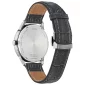 The stainless steel case is the perfect base for the watch's matching dial, with three sub-dials upon a textured inner sector adding to its unique appeal. Applied accents and a leather strap round out the look, with features including 12/24-hour time and analog day/date indicators to balance the aesthetics with the functionality of this sophisticated timepiece. Sustainably powered by any light with our Eco-Drive technology. Water resistance of 100 meters and comes with a 5 year warranty. 40mm Diameter x 20mm W