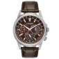 CITIZEN WATCHES CALANDRIER. Bring sophistication to your day with the CITIZEN WATCHES Calendrier. This timeless watch features world time in 24 cities, 12/24-hour time, and day/date. It is shown here in a stainless steel case with a brown leather strap and a brown dial. Featuring our Eco-Drive technology – powered by light, any light. Never needs a battery. Complies with Prop 65. 44mm Diameter