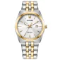 CITIZEN WATCHES CORSO. A classic timepiece is always in style in the Corso men's watch from CITIZEN WATCHES. Featuring a two-tone gold and silver-tone stainless steel bracelet and case with a 3-hand white dial and date indicator, luminous hands and gold-tone markers, this elegant timepiece also features a fold-over clasp closure with hidden push buttons and is water resistant to 100 metres. Complies with Prop 65. 40mm Diameter