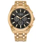 CITIZEN WATCHES PEYTEN. The new CITIZEN WATCHES men's dress watch from the Classic collection makes a tasteful statement. The gold-tone stainless-steel case holds the black dial with a 1/5 second chronograph that measures up to 60 minutes, 12/24-hour, time and date. The sleek dial is encased in a genuine sapphire crystal. The gold-tone stainless-steel bracelet band has a fold over clasp with push buttons, giving the timepiece an understated refinement. Complies with Prop 65. 41mm Diameter