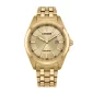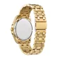 CITIZEN WATCHES Peyten. Make a distinctive style statement. Featuring a gold-tone stainless steel case steel case and a champagne 3-hand dial encased in sapphire crystal, this timepiece is a combination of functional simplicity with a touch of elegance. The gold-tone stainless-steel bracelet has a fold over clasp with push buttons, giving the timepiece an understated refinement. Complies with Prop 65. 41mm Diameter