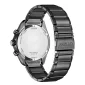 CITIZEN WATCHES's new Sport Luxury Chrono collection combines a desire for luxury watches with a need for modern technology into a single, innovative watch. This men's stainless steel watch stands out with its grey colouring paired with a bold blue dial for a striking look. It has advanced features such as a chronograph that measures up to 60 minutes, dual time zones, a perpetual calendar, and 12/24-hour time. Complies with Prop 65. 43mm Diameter