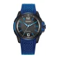 CITIZEN WATCHES Weekender. For a more sporty take on a DRIVE watch from CITIZEN WATCHES, this model has a blue, perforated polyurethane strap paired with a black, 45mm stainless steel case and black dial with subtle blue accents. It is powered by light with Eco-Drive technology and will never need a new battery. Water Resistant to 100M. Buckle. Complies with Prop 65. 44mm Diameter