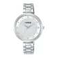 Lorus RG257W ladies fashion watch features stainless steel case and bracelet, 4 crystals and water resistant to 50 meter / 165 ft. Complies with Prop 65. 34mm Diameter