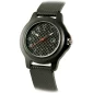 Discover your distinctive personality with this European army style sport watch. Featuring a solid brass case with black matte finishing and carbon fiber face. Complies with Prop 65. 29mm Diameter