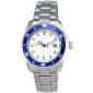 Matsuda ladies sport watch, brushed silver finishing solid 35mm brass case and stainless steel band, uni-directional diver's bezel, luminous sweeping hands, Japanese quartz movement with date, and water resistance construction. Complies with Prop 65. 35mm Diameter