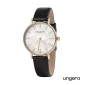 The "Paola" watch is slim, feminine and easy to wear. This black version has a mother of pearl dial, lending it an elegant feel. The bracelet is made of carefully chosen genuine leather. 3.375" W x 3.375" H x 3.125" D
