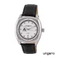 The "Taddeo" watch, with its rounded square case is a more modern choice. Keeping in with the rest of the eponymous line, it is incorporating sportswear elements into a contemporary design. This watch has a black crocodile embossed leather strap and a brushed and shiny chrome dial for a unique allure. It is 3 ATM water resistant and Japan Miyota 3 hands date movement. 3.375" W x 3.375" H x 3.125" D