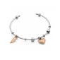 CJ Steelx Open Bangle with IP Rose Leaf and Heart Charm - Rose and Silver